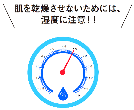 肌の乾燥は湿度に大きな影響を受け、湿度が50%以下になると肌表面の角質層の水分が急激に蒸発をしはじめます。ですが、外気の湿度は秋から下がりはじめ、10月以降は30%を下回ることも。室内では暖房を使用するため、お部屋の空気はさらに乾燥しがちになります。さらに、近年ではヒートアイランド現象(郊外に比べ、都市部ほど気温が高くなる現象)によって、都市部の乾燥化はますます進行しています。
